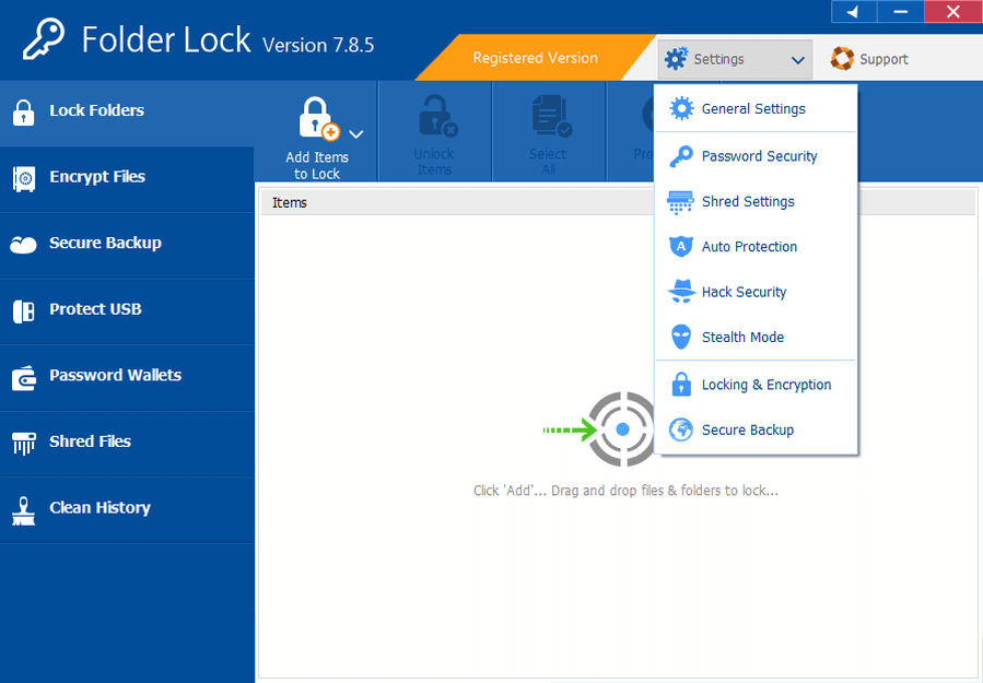 The application makes files inaccessible even to viruses, Trojans, worms and spyware. In addition, it is able to block access to data on flash drives, memory cards, CD/CD-RWs, floppy disks and laptops. To gain access to hidden data, you just need to run Folder Lock and enter the correct password. The program is very easy to operate and supports drag & drop.