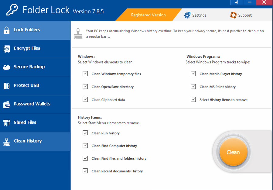 To increase security, it is recommended to delete traces of your work on the computer. The program gives you the opportunity to clear temporary folders, delete the history of search queries and the operation of some programs.