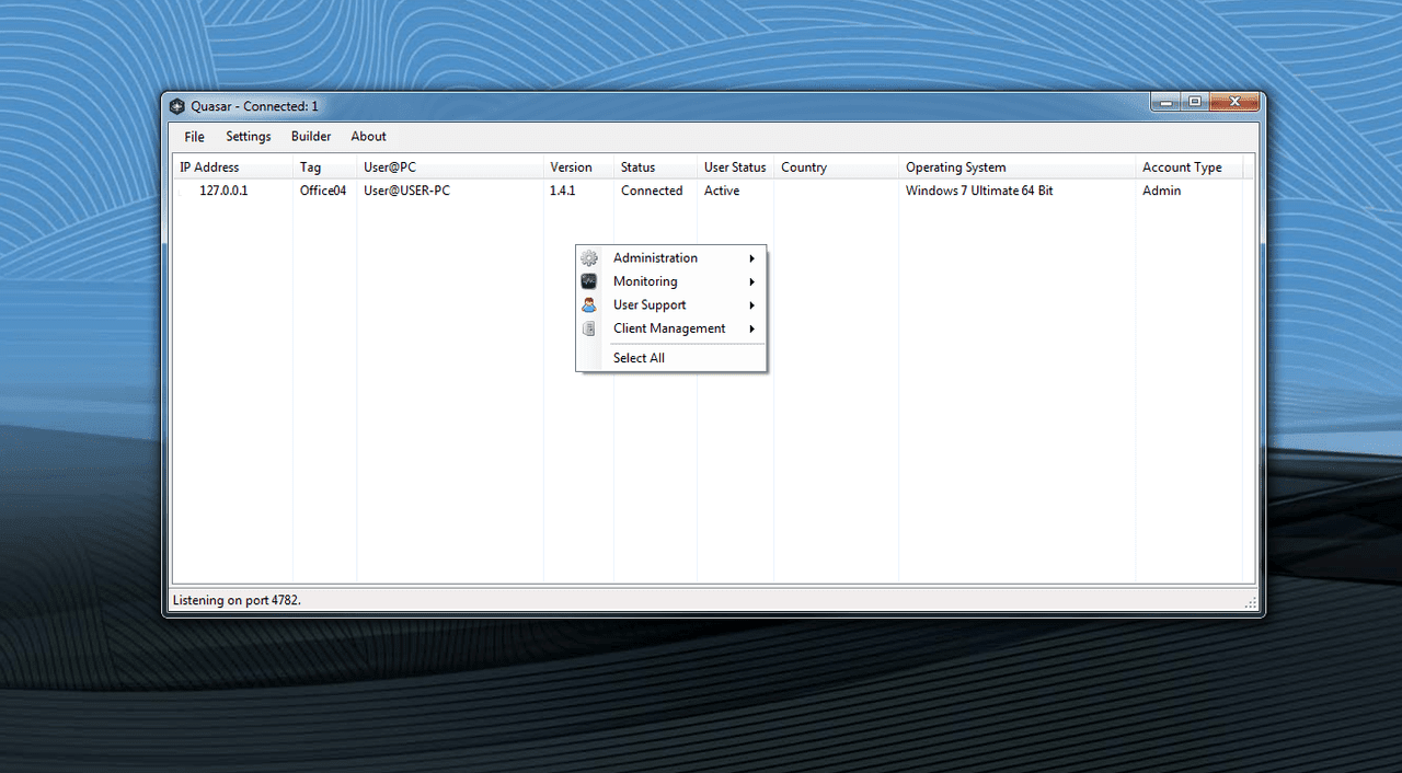 Quasar RAT also comes equipped with a wide range of features, making it a versatile tool for cybercriminals. Some of the features include keylogging, screen capture, file transfer, and remote desktop access. These features allow an attacker to monitor a victim’s activity, steal sensitive data, and carry out further attacks.