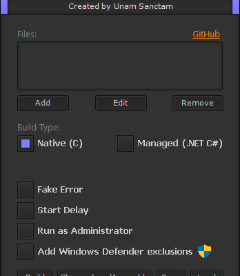 - Native or Managed – Builds the final executable as a native (C) or a managed (.NET C#) 32-bit file depending on choice