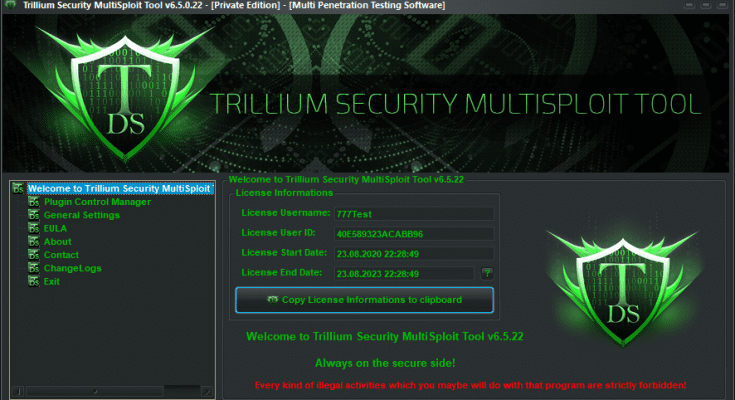 4. Now you can run “Trillium_Security_MultiSploit_Tool_v6.5.21.exe”.