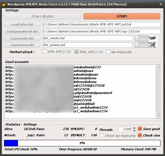 WordPress XML-RPC + WP-LOGIN Bruteforce [10 macros] v.2.11