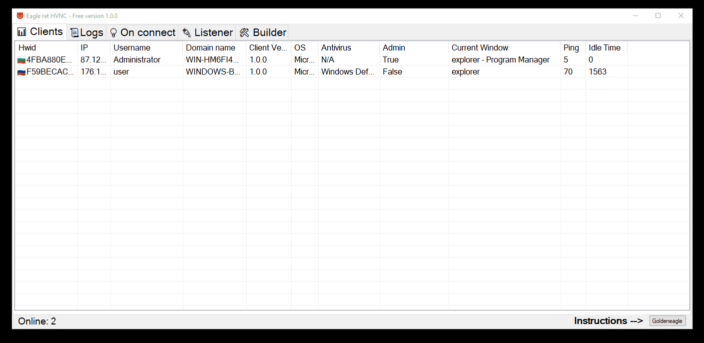 With HVNC, you can use an infected system undetected. Run any files or use a browser with active sessions.