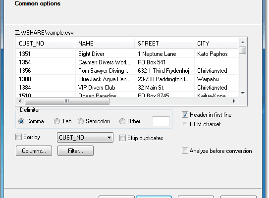 Set filters with Advanced CSV Converter. The program lets you set conversion filter by example and perform query by example. This gives you more flexibility in defining the parameters of the output file.