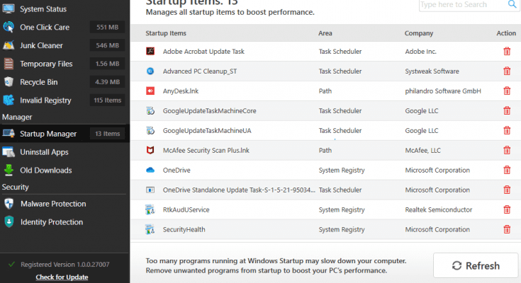 Cleaning your PC has become easier with Advanced PC Cleanup. Get rid of redundant apps and files from your computer in a few clicks. Safeguards your computer from potential malware threats and removes the personal information saved online. Disable startup items and uninstall unwanted apps to enhance PC speed.
