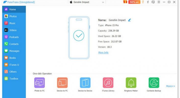 As the file transfer software for iOS devices, FoneTrans supports almost any type of data from iPhone, iPad and iPod. Whether you want to sync photos from an old iPhone to computer, migrate contacts from an old iPhone to new iPhone, or just backup iMessages from iPad to computer, FoneTrans can do it well.