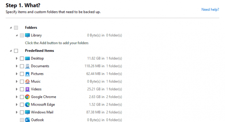 You can specify file groups to back up, such as IE favorites or Windows mail contacts, or select individual folders to back up under each profile you create.