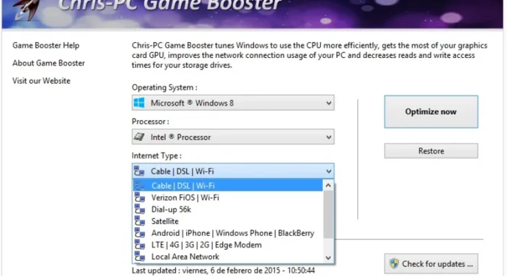 Chris-PC Game Booster goes into action setting different Windows parameters in registry and configurations files in such a way that it allows faster access to RAM, CPU/GPU, storage disks, and cache memory. Furthermore, it tunes the Windows network parameters in such a way as to obtain the slim setup needed for an online gamer profile.
