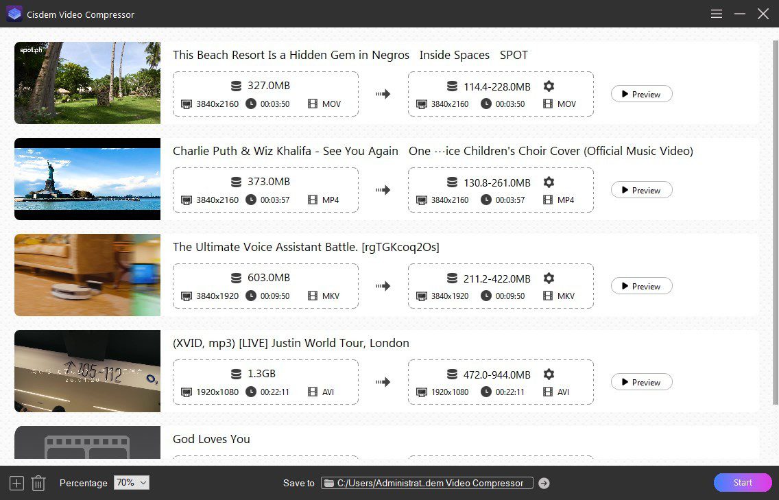 Reduce Media File by Up to 90%: This tool can significantly reduce the size of your media files. The process is fast, and the quality remains high, making it an excellent choice for personal and professional use. Adjust the compression percentage to get your desired file size.