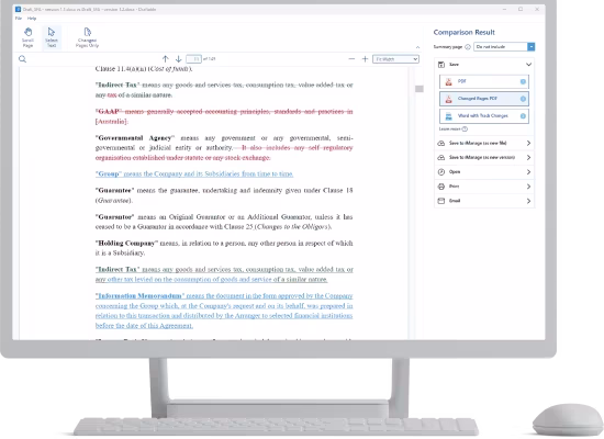 Document Comparison Software for Desktop. Compare PDF, Word, PowerPoint & Excel documents side by side on your computer. Comparisons don’t use the internet and your documents never leave your computer. For secure collaboration, export the comparison as a PDF, and share a password protected version of the output.