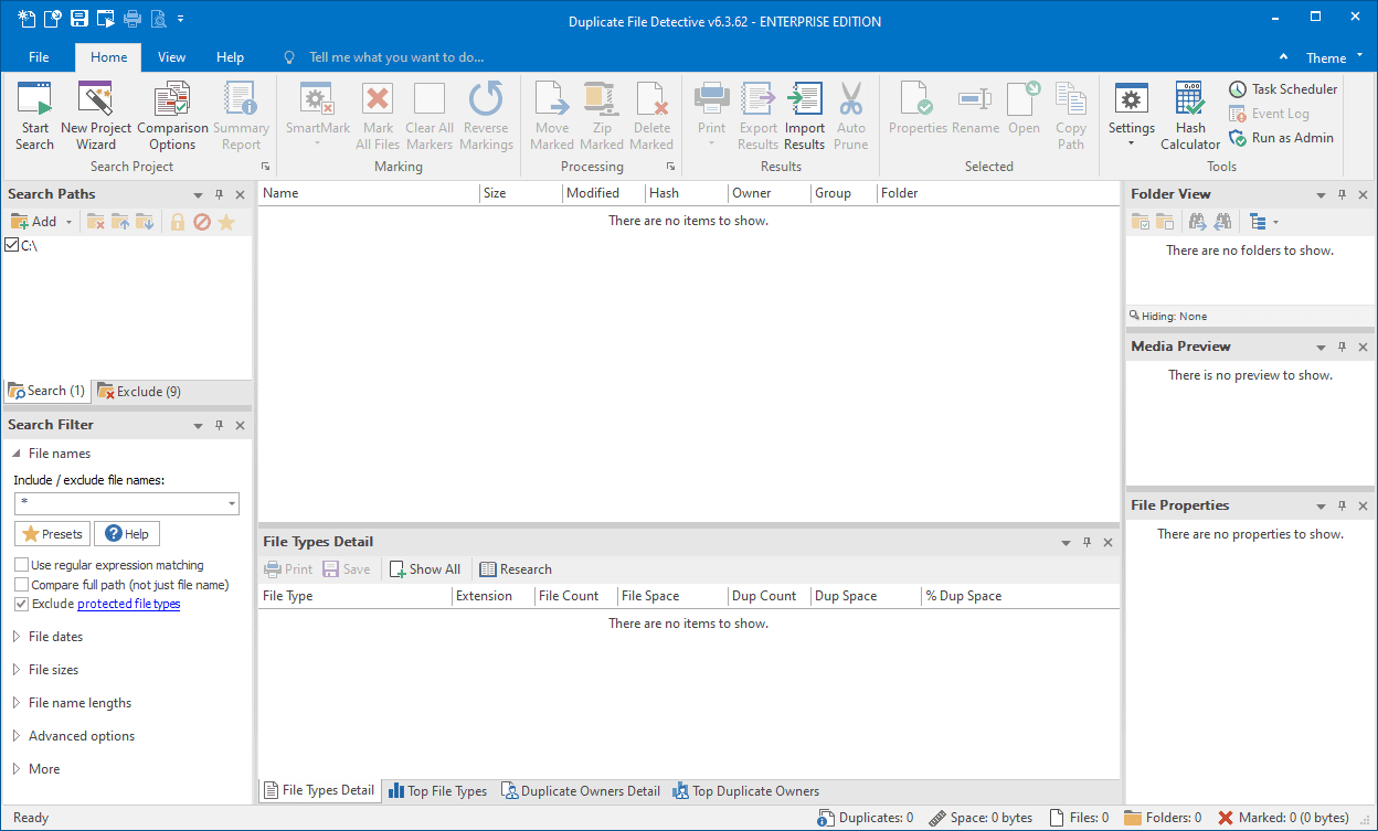 Duplicate File Detective uses state-of-the-art file content analysis technology to show you exactly where your duplicate files are (even when the file names are different). You can search multiple folders, drives, removable storage devices, even network shares – all in a single pass. Then move, zip, or remove duplicate files safely with assistance from our innovative SmartMark duplicate file selection system.