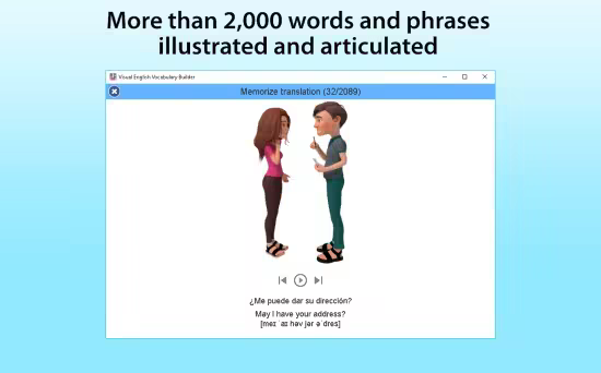 English Visual Vocabulary Builder : Thanks to our unique learning method, you will soon achieve great results on the path to mastering English. Vocabulary Builder is ideal for anyone wishing to learn some words and phrases for use on holiday, as well as those looking to brush up their language skills. Our unique method combines visual and acoustic training: each of the almost 2,000 words and phrases comes with a memorable illustration and is articulated by our professional speaker.