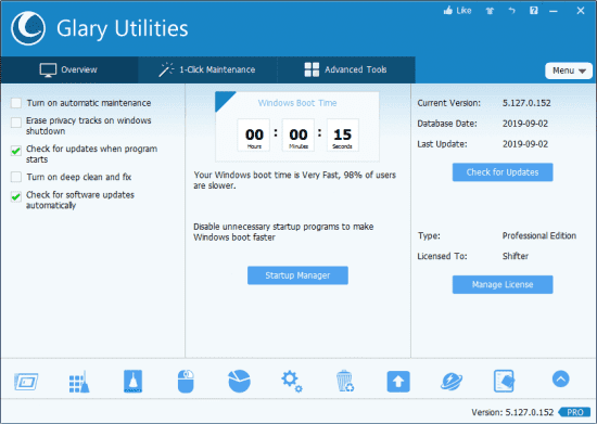 Furthermore, Glary Utilities includes the options to optimize memory, find, fix, or remove broken Windows shortcuts, manage the programs that start at Windows startup and uninstall software. Other features include secure file deletion, an Empty Folder finder and more. Other features include secure file deletion, an Empty Folder finder and more. All Glary Utilities tools can be accessed through an eye-pleasing and totally simplistic interface.