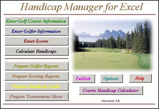 Handicap Manager for Excel – this is a customizable application written in Visual Basic as an application for Microsoft Excel. Fully compatible with Excel and above and meets all the requirements of the USGA handicap system for calculating the indices USGA handicapping. Can be used to calculate the average score, statistics, leagues handicaps and custom handicaps based on user settings. User-friendly interface and easy “point and click” make it easy to work with the program even perfect for beginners. It does not matter Whether you USGA Handicap Indexes for all members of the club or just tracking your own glasses, Handicap Manager for Excel provides a simple solution. Includes a separate calculator calculate the course handicap for Palm OS.
