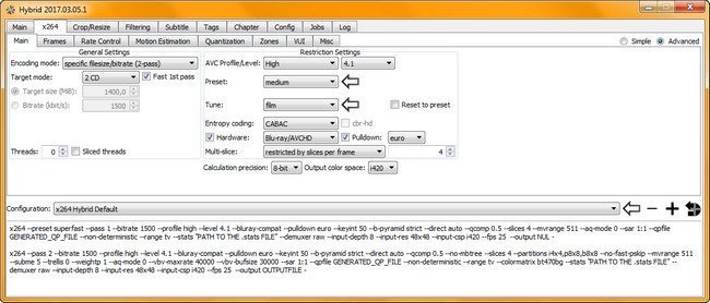 extensive ability to configure x264s setting (with dependency checks)
