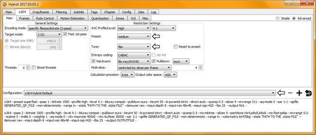 extensive ability to configure x264s setting (with dependency checks)