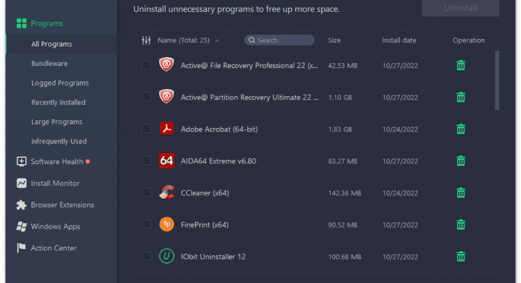 As time going on, your PC will easily become slow after piling up too many leftovers in registry after general uninstallation. But now users can remove the programs and all leftovers quickly by just 1 click in IObit Uninstaller ; and get a cleaner, faster and more stable PC. Additionally, IObit Uninstaller can also remove programs and pre-installed apps in Windows 10.