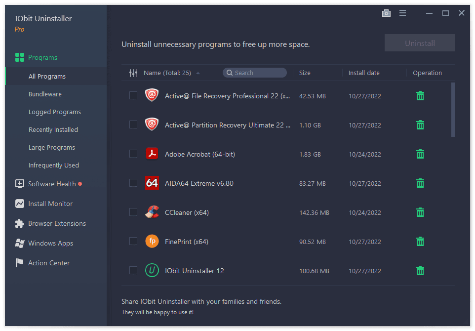 As time going on, your PC will easily become slow after piling up too many leftovers in registry after general uninstallation. But now users can remove the programs and all leftovers quickly by just 1 click in IObit Uninstaller ; and get a cleaner, faster and more stable PC. Additionally, IObit Uninstaller can also remove programs and pre-installed apps in Windows 10.