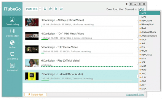 iTubeGo HD Video Downloader fully supports downloading various SD or HD videos. You can download high quality videos without any loss and convert to MP4 format. No matter 720p, 1080p, 4K can be downloaded without any hassle.
