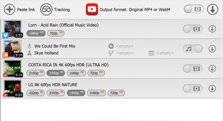 The program supports all available resolutions, be that 720p, 1080p, 4K or 8K. The choice is up to you. Unlike online video downloaders, the app downloads any resoulution with audio.