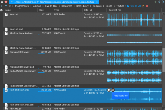 File contents preview Not just metadata but MIDI files, audio waveforms and image thumbnails can be displayed with zooming. One-click playback of MIDI and audio files. Drag any MIDI tracks directly to your DAW.