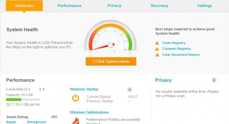 – Easy to use interface that lets you perform 1-Click Optimization for your PC