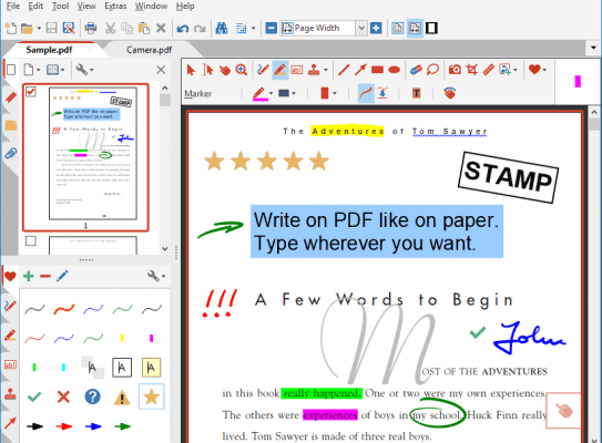 Previously, annotating, commenting or proofreading a document received for review in PDF file format was possible only by using multiple software products in a row–or only by printing the document and adding comments manually. With PDF Annotator, annotations can also be added in a natural way–using a pen–but everything remains in digital format. PDF Annotator allows commenting of PDF files in a single step.