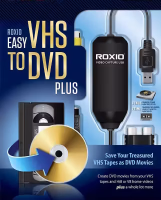 Roxio Easy VHS to DVD Plus : Technology changes and time passes, but you can keep your memories current. Imagine the excitement among your friends and family when they unwrap the gift of video! Now you can quickly convert old VHS tapes to DVD or digital, right at home! It’s easy. You’ll find yourself equipped with all the tools you need to not only convert video, but to enhance it and even add titles. Then, when you’re ready, simply export your revived video to digital, or burn it to disc complete with chapters and menus. Keep the memories alive!