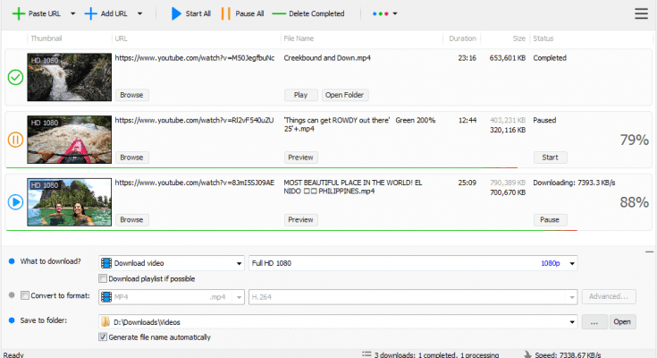 Simultaneous downloads. Download more than one video at same time and safe time.