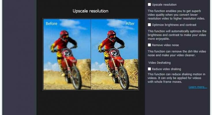 As a comprehensive video enhancement program, it could enhance your video quality greatly by upscaling video resolution from low to high, optimizing brightness/contrast/saturation/hue, etc.