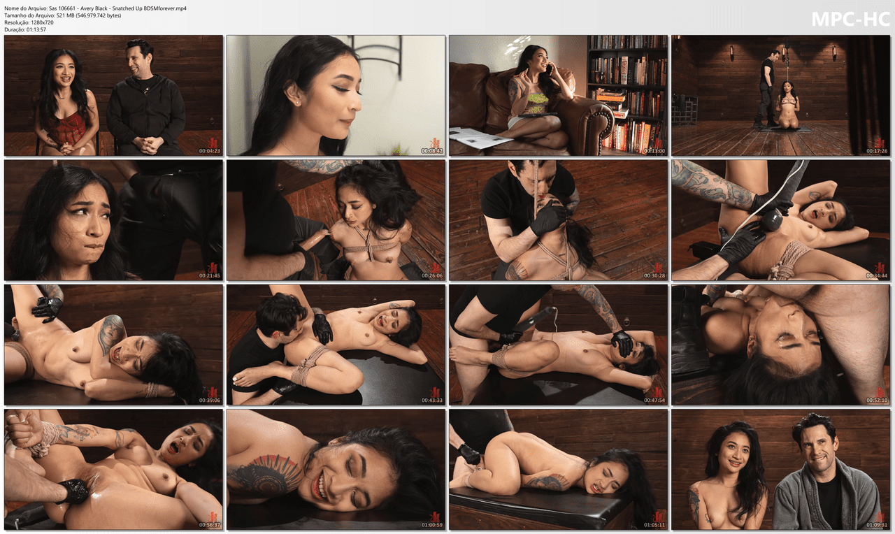 Avery Black has a secret fantasy and contacts Tommy Pistol to help her live it out. While asleep at home Tommy breaks in and abducts her from her bedroom. She finds herself bound and kneeling on a dungeon floor. Tommy slaps her face and probes her throat with his fingers. After some discipline she gets a mouthful of cock and Tommy fucks her throat. Her tits and ass get flogged and her pussy ferociously fingered. Next, Avery is bound to a wooden crate with one leg suspended and the other bound at the knee, leaving her pussy exposed. After some more finger-banging and pussy licking she gets her pussy stuffed with Tommy’s cock and balls. He alternates between fucking Avery with his cock and his hand until he’s managed to get his whole hand inside of her. He crops her body and makes her earn a few more orgasms. Finally Avery is bound on the crate again with her head over the edge so Tommy can fuck her throat while using the Hitachi on her pussy. Tommy fist-fucks Avery’s swollen pussy and then fucks her hard with both his cock, hand, and the vibrator and ultimately blows his load all over her pretty face!